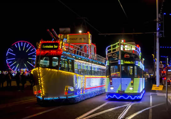 lights of Blackpool’s famous illuminations. They looked pale at