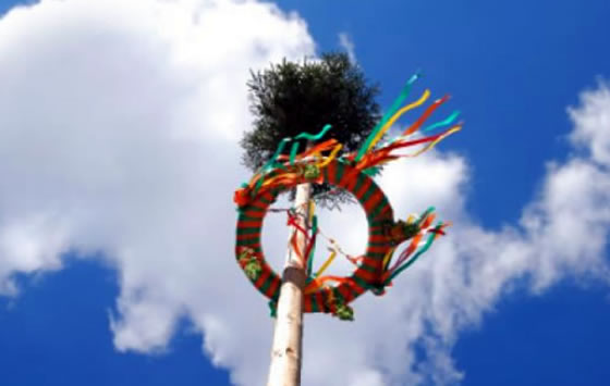 Then the most vital part of the day’s events took place – the raising of the Sommerbaum. It was not a real tree, of course, but a long, stout pole onto which thinner ‘branches’ had been fixed. Tokens representing the hopes and wishes of the people were hung onto the branches. There was a single baby’s shoe, a school tie, horseshoes, scarves, lots of coloured ribbons representing couples getting married, patchwork pieces and many other tokens.
