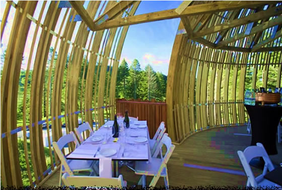 It was cool and pleasant and made her feel hungry for more substantial food. When they chose their main course and their own personal chef seasoned and cooked the meat over a portable flame grill she enjoyed the whole process. She also had time while they waited to look around properly at the restaurant. It was almost entirely made of wood, painted and natural. There were no windows, only waist height wooden balustrades. At four places around the circular restaurant the huge sub branches came through the floor at an angle. The wine bar was hollowed out of the living wood of the great trunk itself and a spiral staircase went up through the wooden ceiling to the floors above and the luxury bedroom suites for overnight guests.