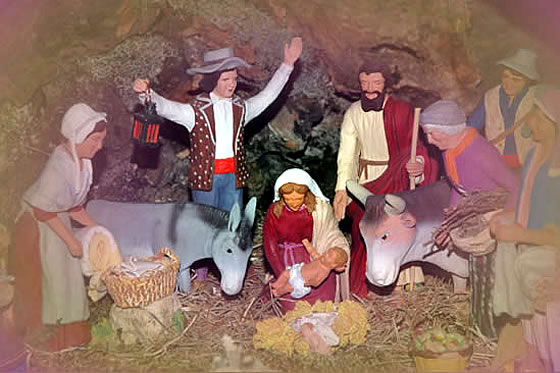 looked again the crèche was not just a wooden model on the sideboard,