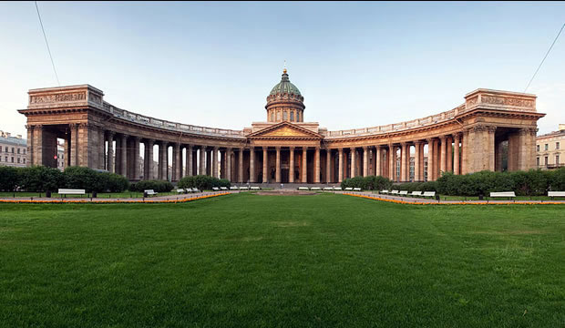 at the entrance to the Kazan Cathedral in St. Petersburg. They had already