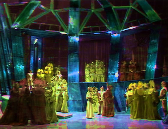 breastplate and plumed helmet marched to the video-screen and turned down