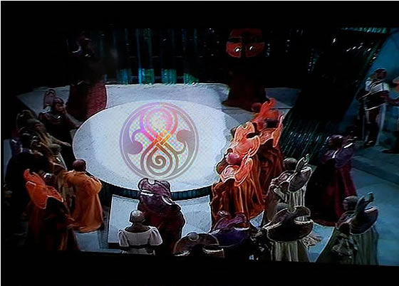 Koscieda, slumped on the Throne of Rassilon. She was wearing the Sash