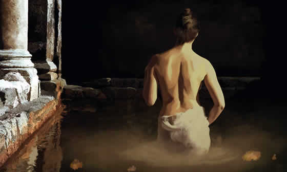 and Harrogate with mineral spas. She imagined a modern swimming pool.