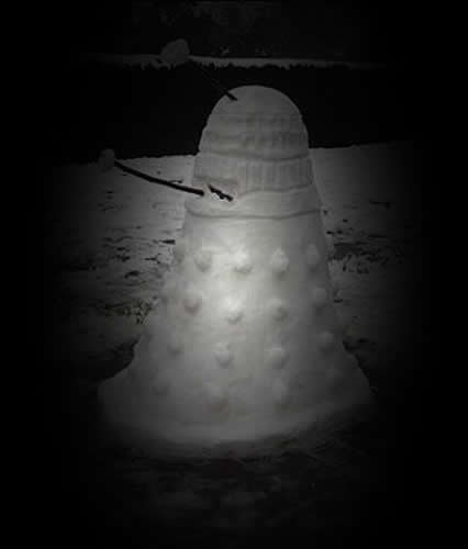 It started to snow when they were eating lunch, and there was soon enough of it for the children, and one nine-hundred and fifty year old child at heart to play out. Rose watched from the door of the flats as he and the boys built a snow Dalek that was freakishly realistic.