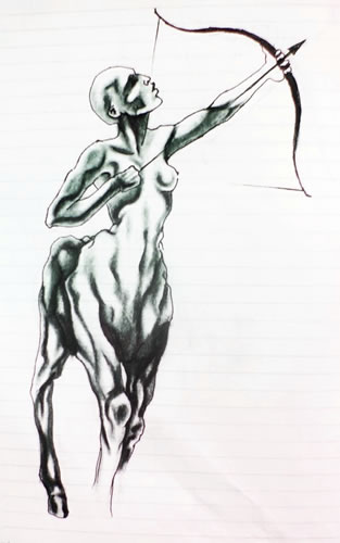 of the bowstring of Sagittarius. As she pinned it through the old leather