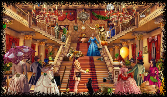 He returned to the main door, but this time instead of opening into the multi-coloured smoke and light display of the inside of a nebula, he saw a ballroom full of dancers in fancy dress.