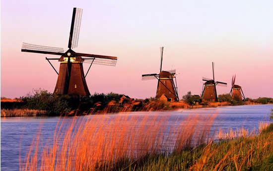 Netherlands countryside and those great monuments to Human ingenuity facing