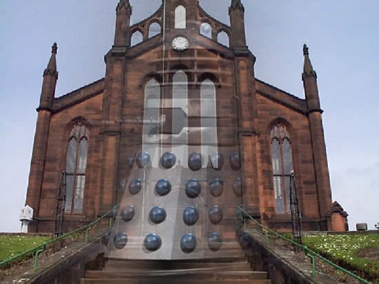 The Dalek was at the bottom of the church steps. He and the woman were at the top. It couldn’t reach them, because these ones that attempted to invade Earth in the mid twenty-second century didn’t have any hover capability. But he knew they were well within range of its death ray. And so was the man. He had spotted the danger and dodged into the broken doorway of an abandoned hotel opposite the church.