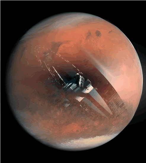 Christopher laughed quietly. The Doctor adjusted the settings and the TARDIS moved again very briefly, materialising aboard the station itself. They stepped out onto an observation deck with a magnificent view of the red planet below.