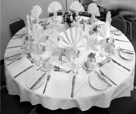 silverware, best china for their meal, and gold wrapped gifts at each