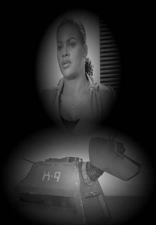 Penny didn’t say anything. She left the room quietly. Sarah Jane heard her footsteps going up the stairs. She waited a few minutes and then followed her. She wasn’t at all surprised when she saw that the bathroom was empty. She carried on up to the top floor, the attic, and stepped inside. She stood and watched, in amusement, for a while, as Miss Penny Carter, investigative journalist, backed further and further away from K9. His tail was wagging in a friendly way, but Miss Penny Carter seemed to be scared of him. She was whimpering and pleading for him not to kill her.