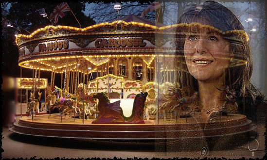 against the beautiful colours of the carousel.