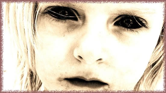 child with all black eyes?”